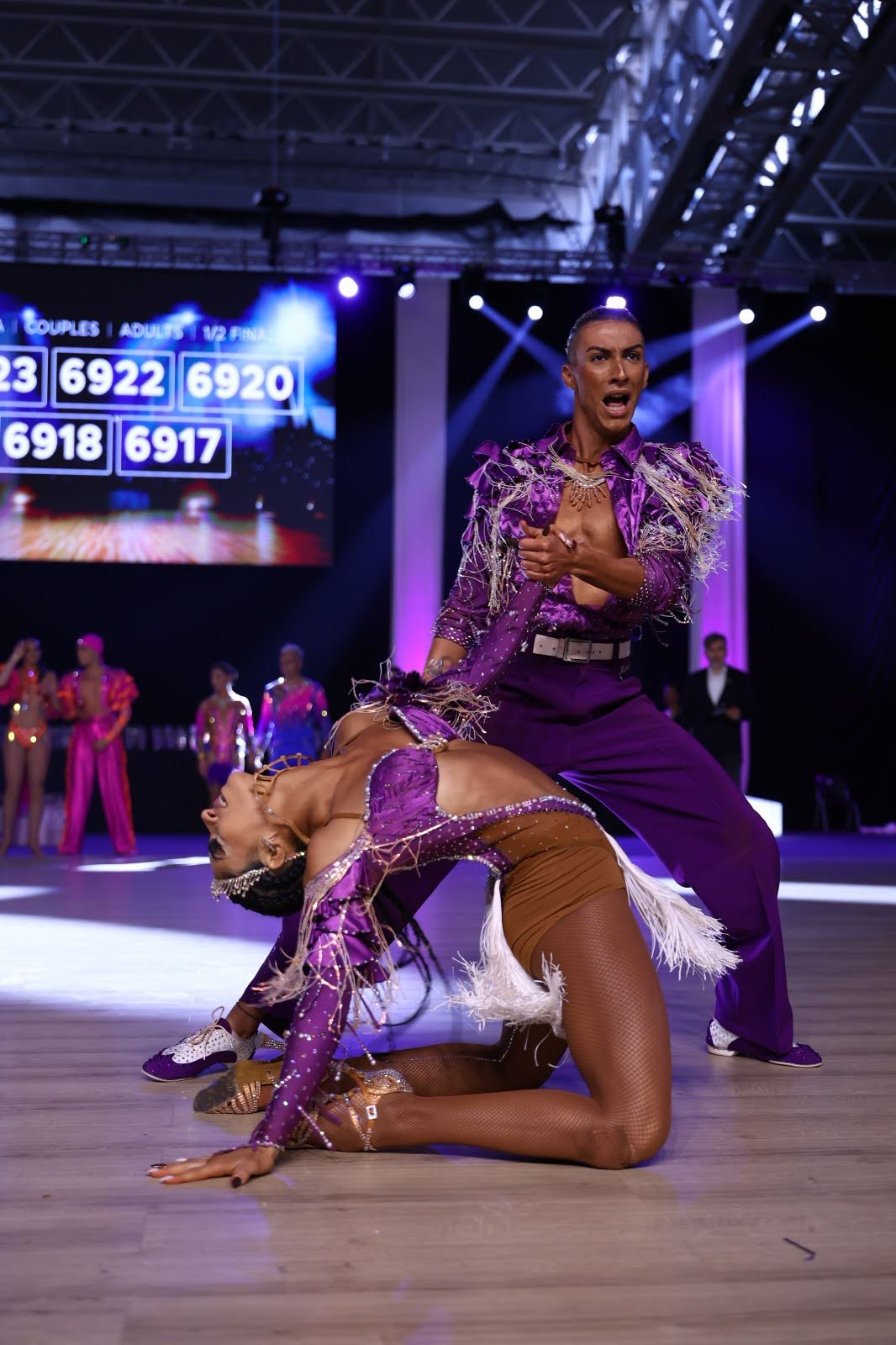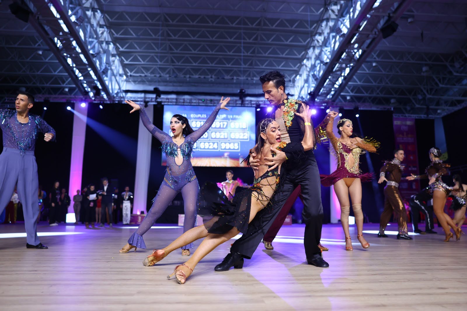 The atmosphere is filled with electric energy as dancers show their passion, drawing cheers and applause from the crowd.