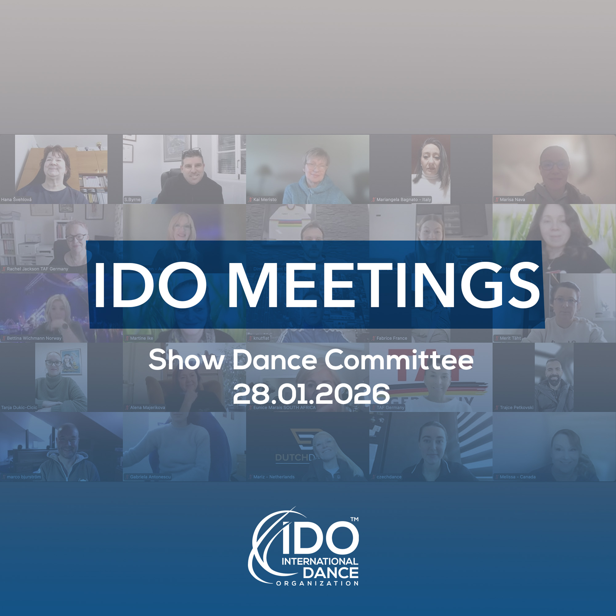 The International Dance Organization (IDO) Show Dance Committee held its official meeting for 2026 on January 28, convening online via Zoom and bringing together 36 delegates and guests from 25 countries across four continents. The meeting marked an important step in shaping the future direction of IDO Show Dance competitions worldwide.